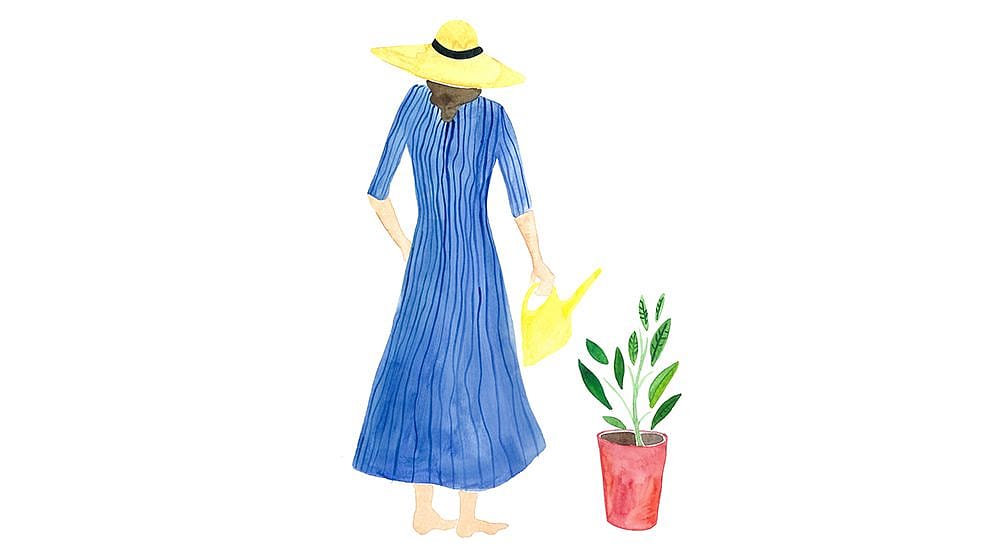 Wear light, long-sleeved clothing made of natural materials such as linen, and a sun hat.